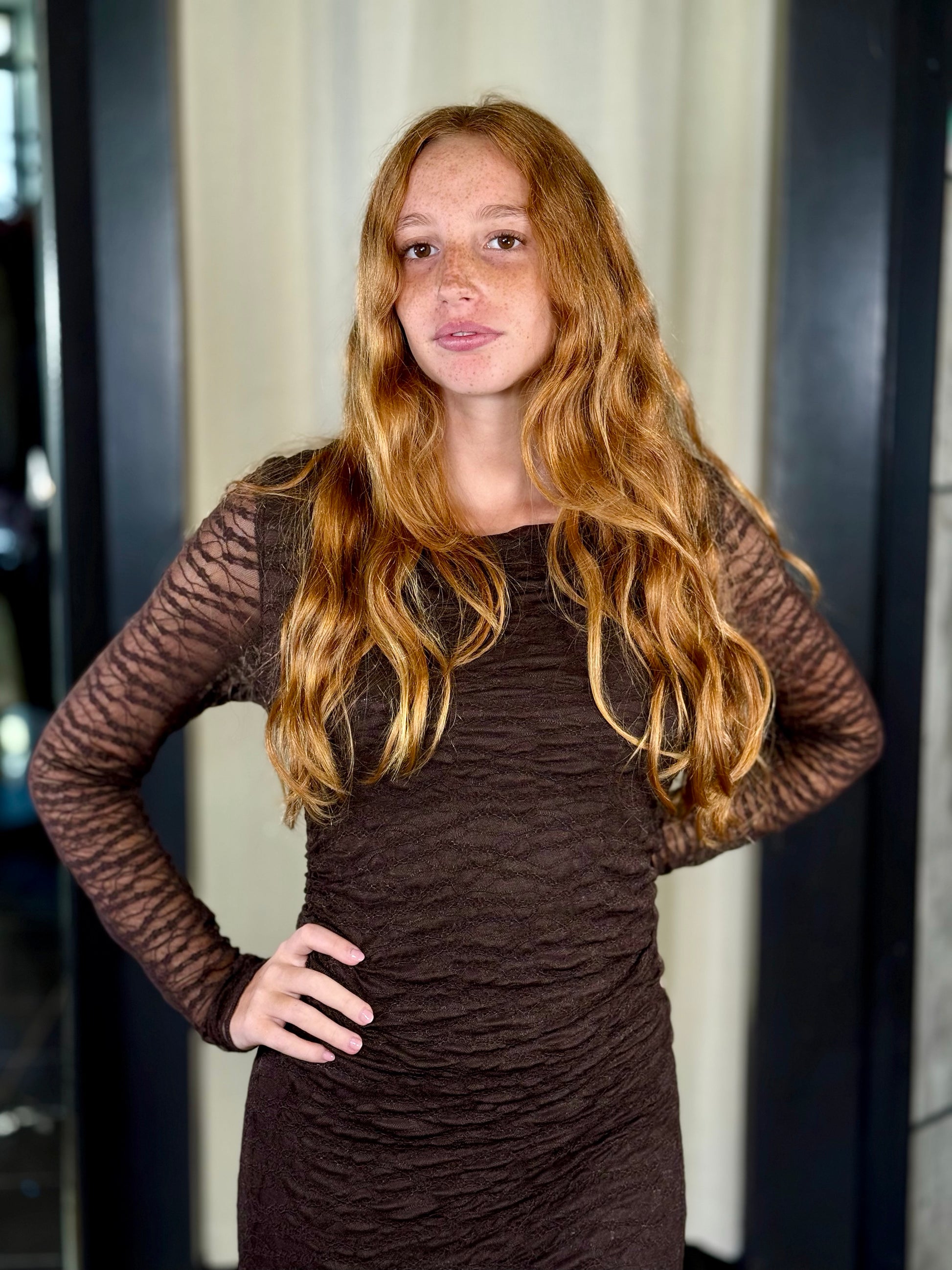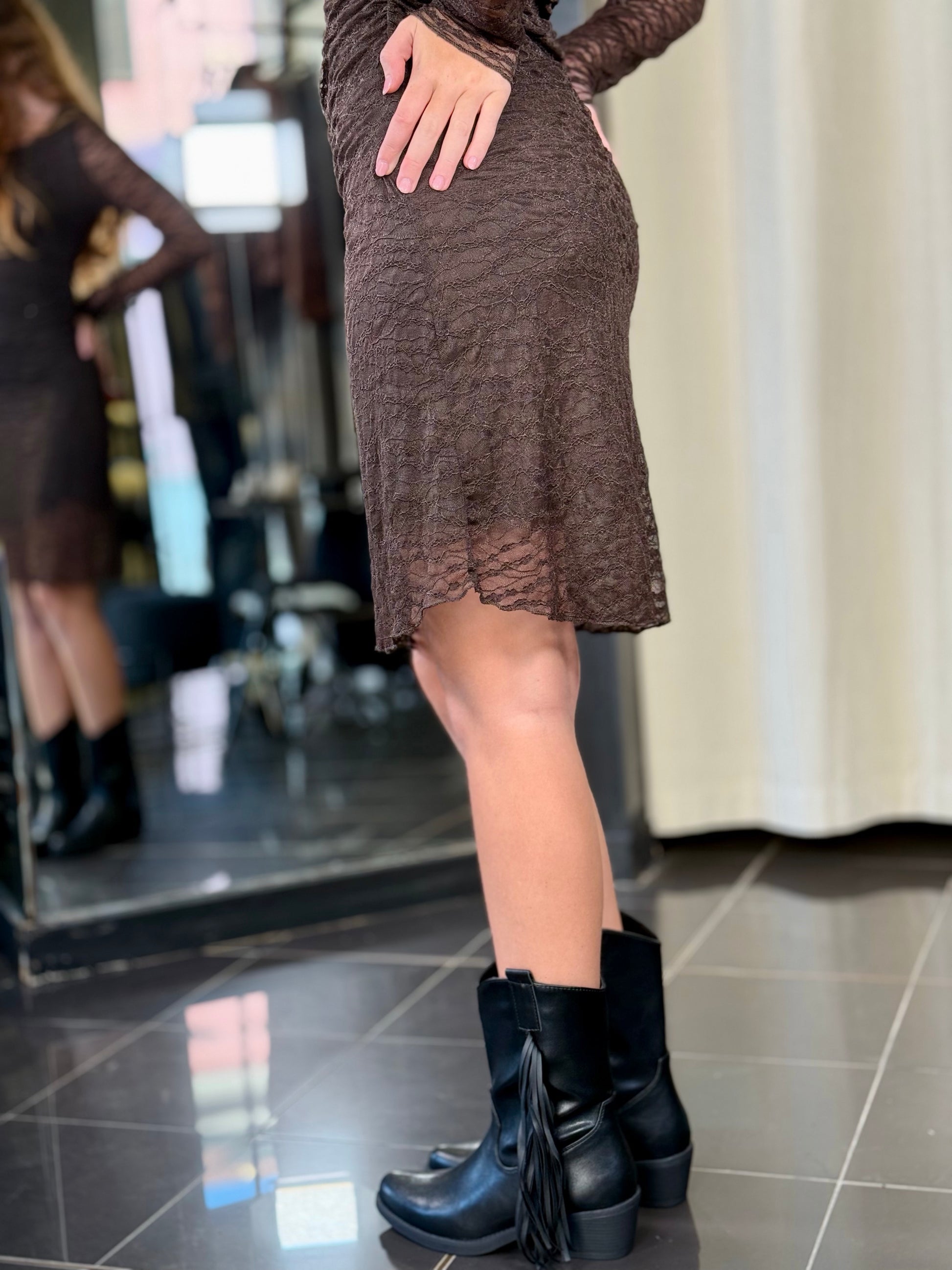 Abito a tubino in pizzo marrone in taglia unica 2378