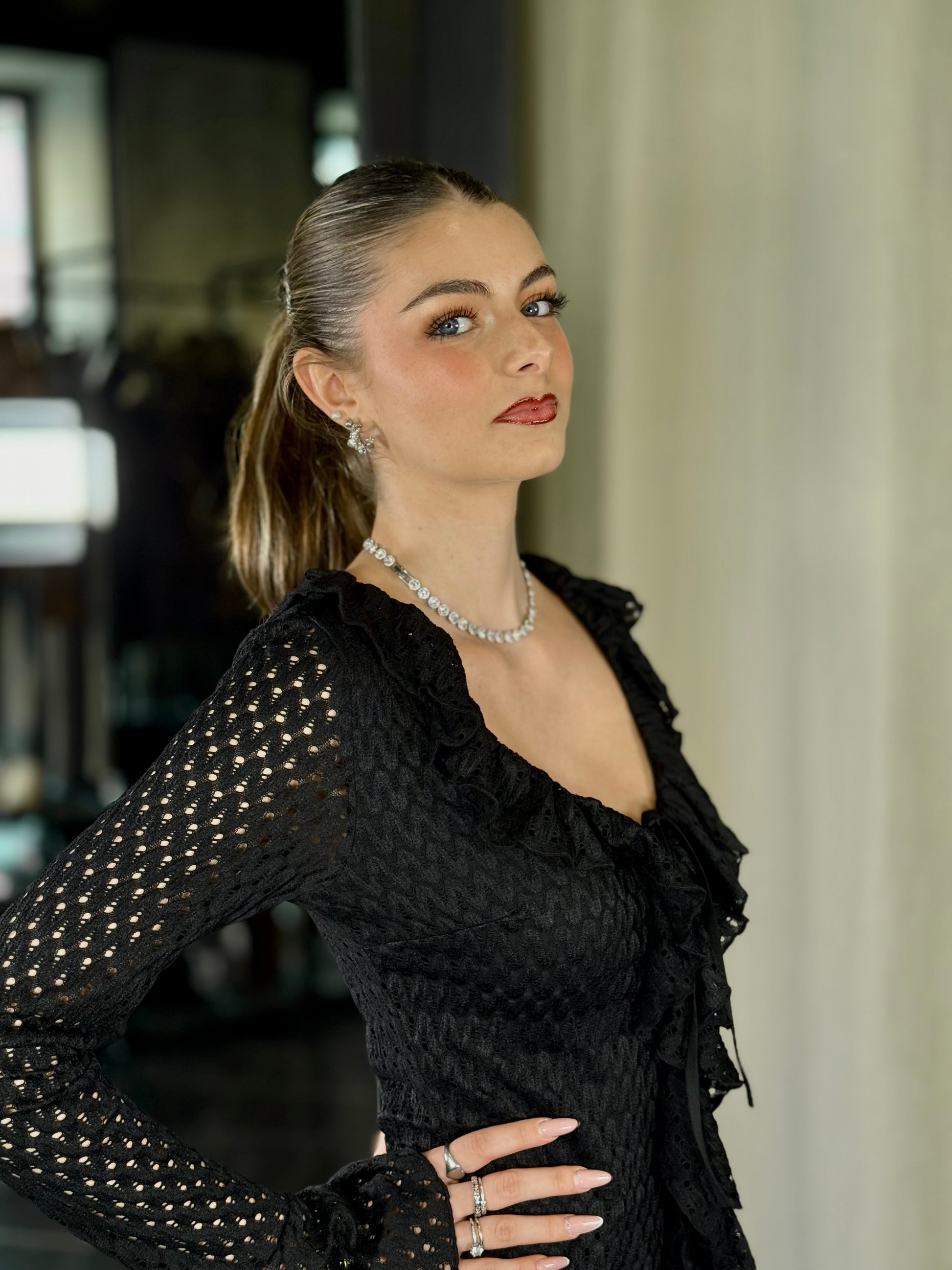 Abito con effetto pizzo nero in taglia unica 2020