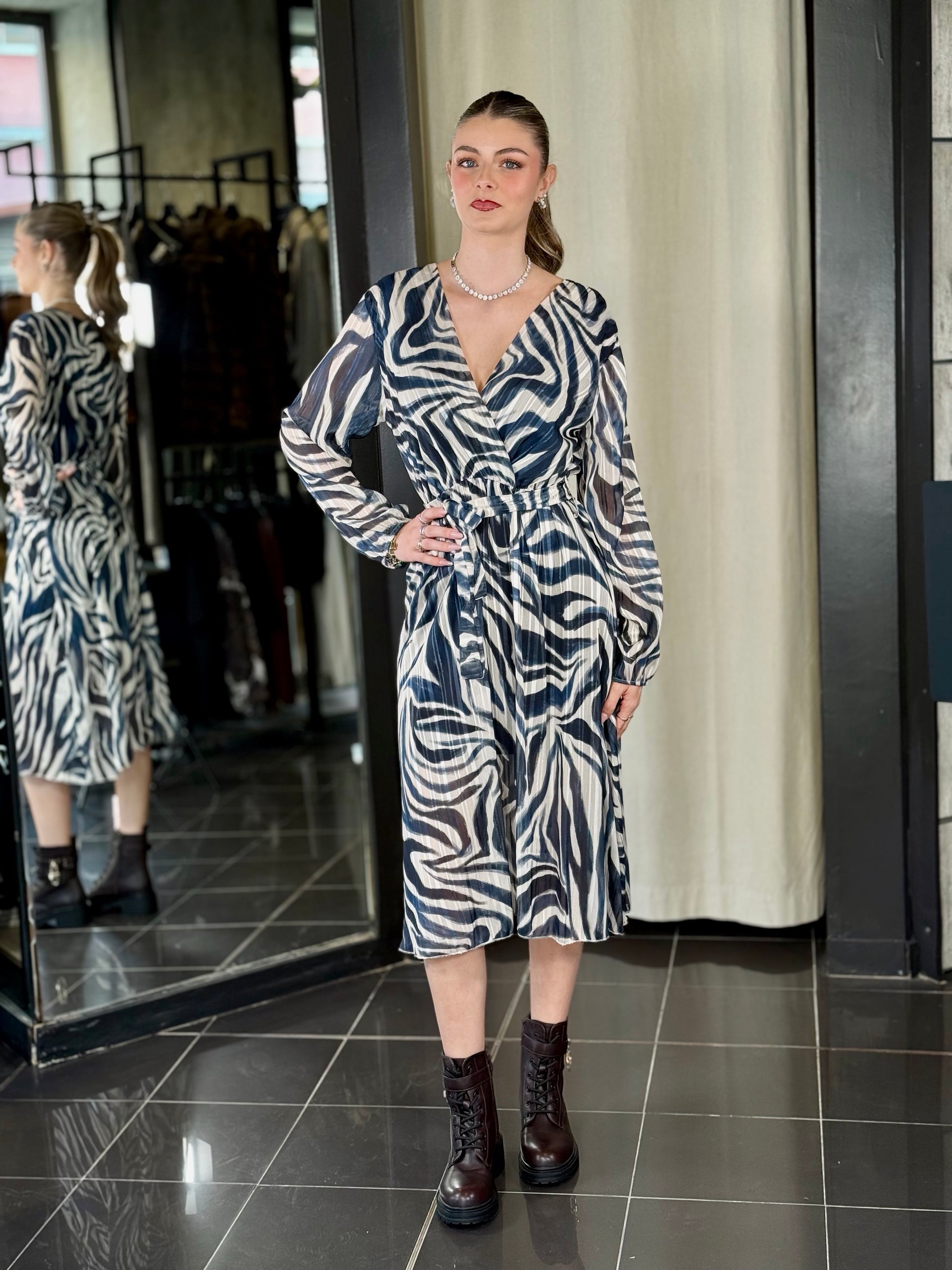 Abito midi con fusciacca blu e scollo a V in taglia unica 2219