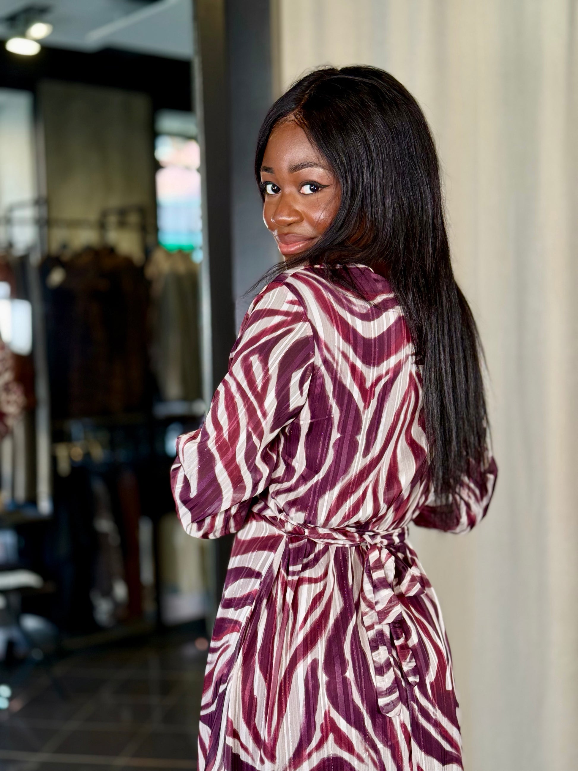 Abito midi con fusciacca bordeaux e scollo a V in taglia unica 2004