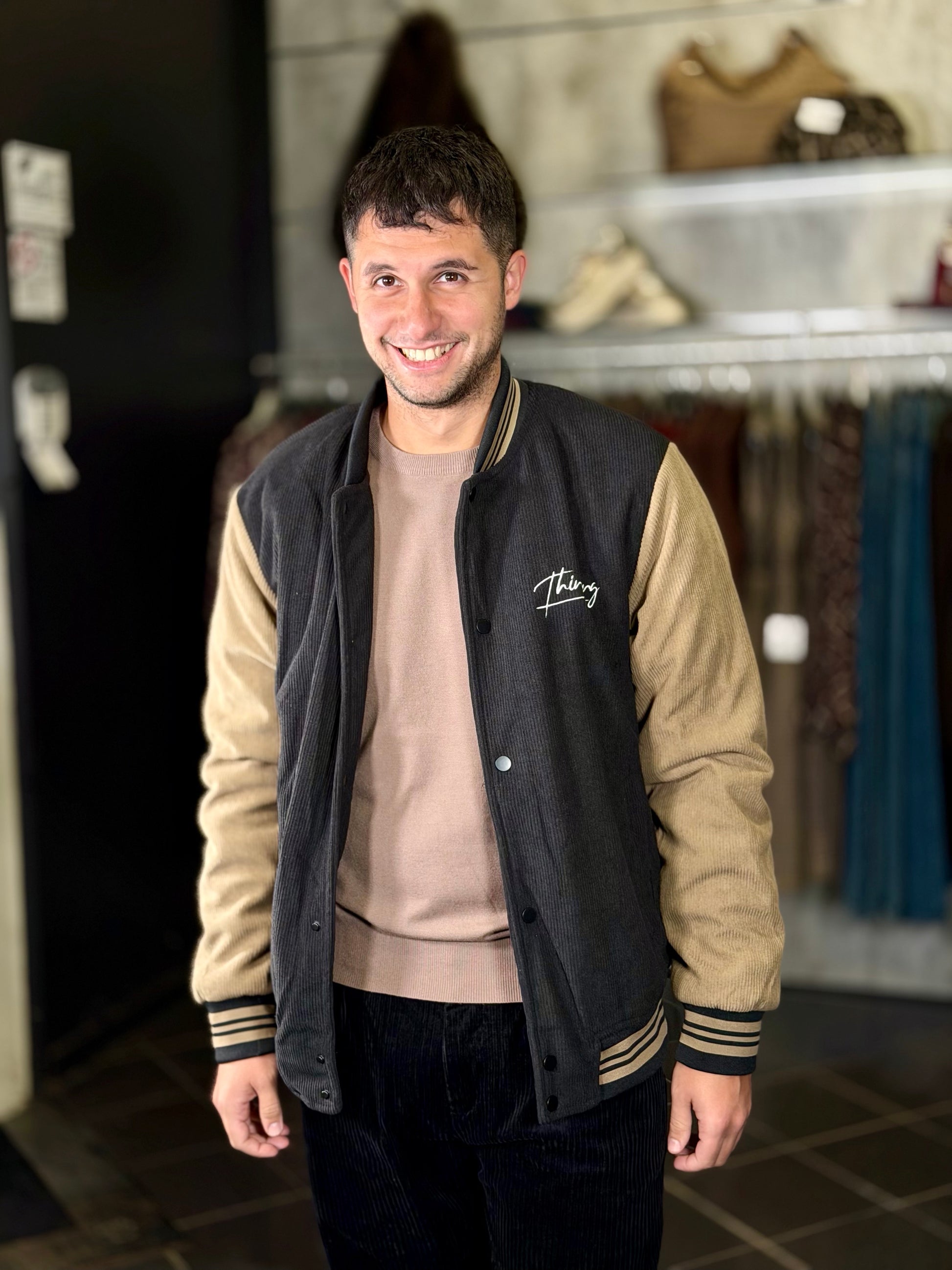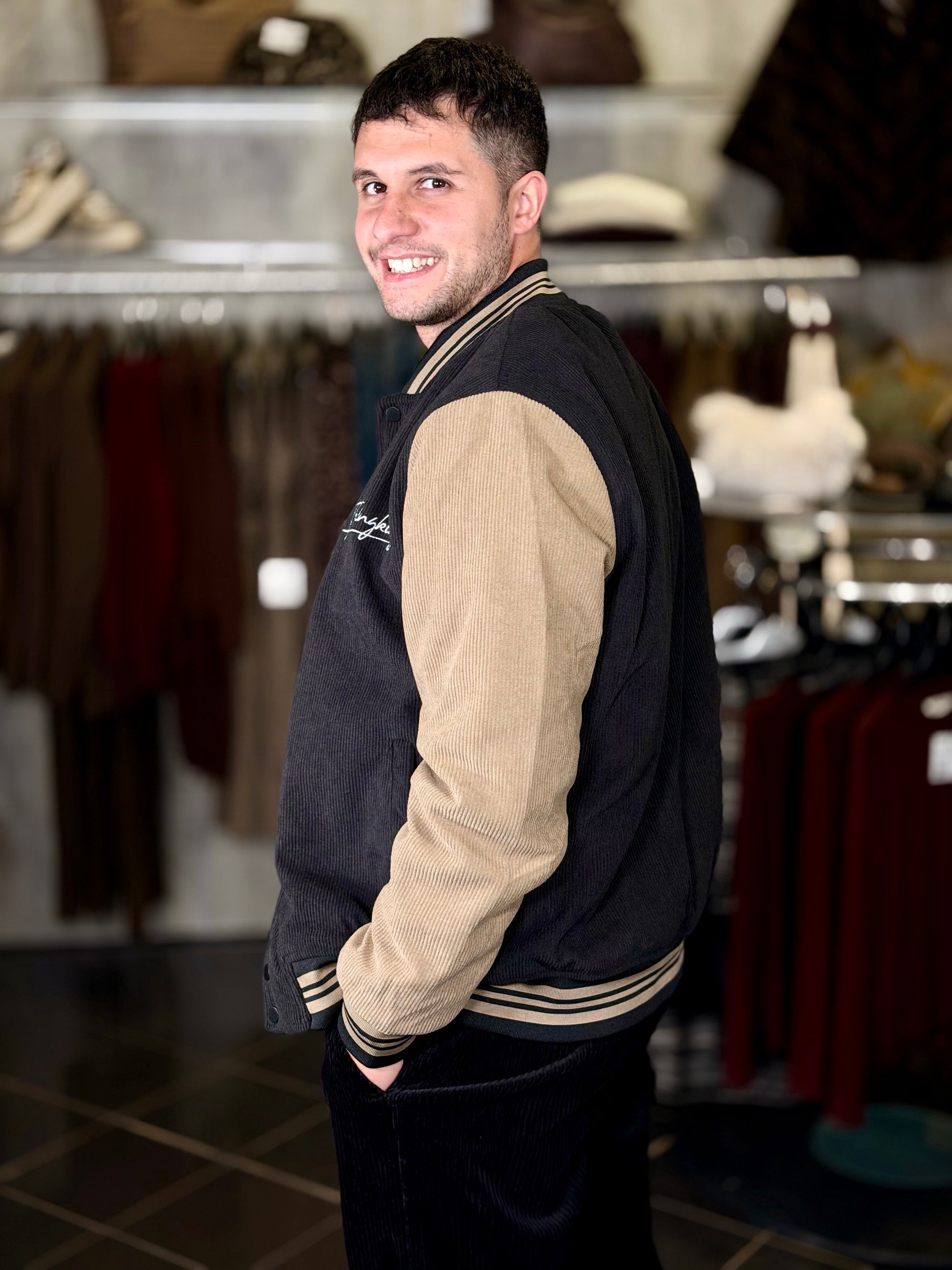 Bomber effetto velluto a coste nero 2149
