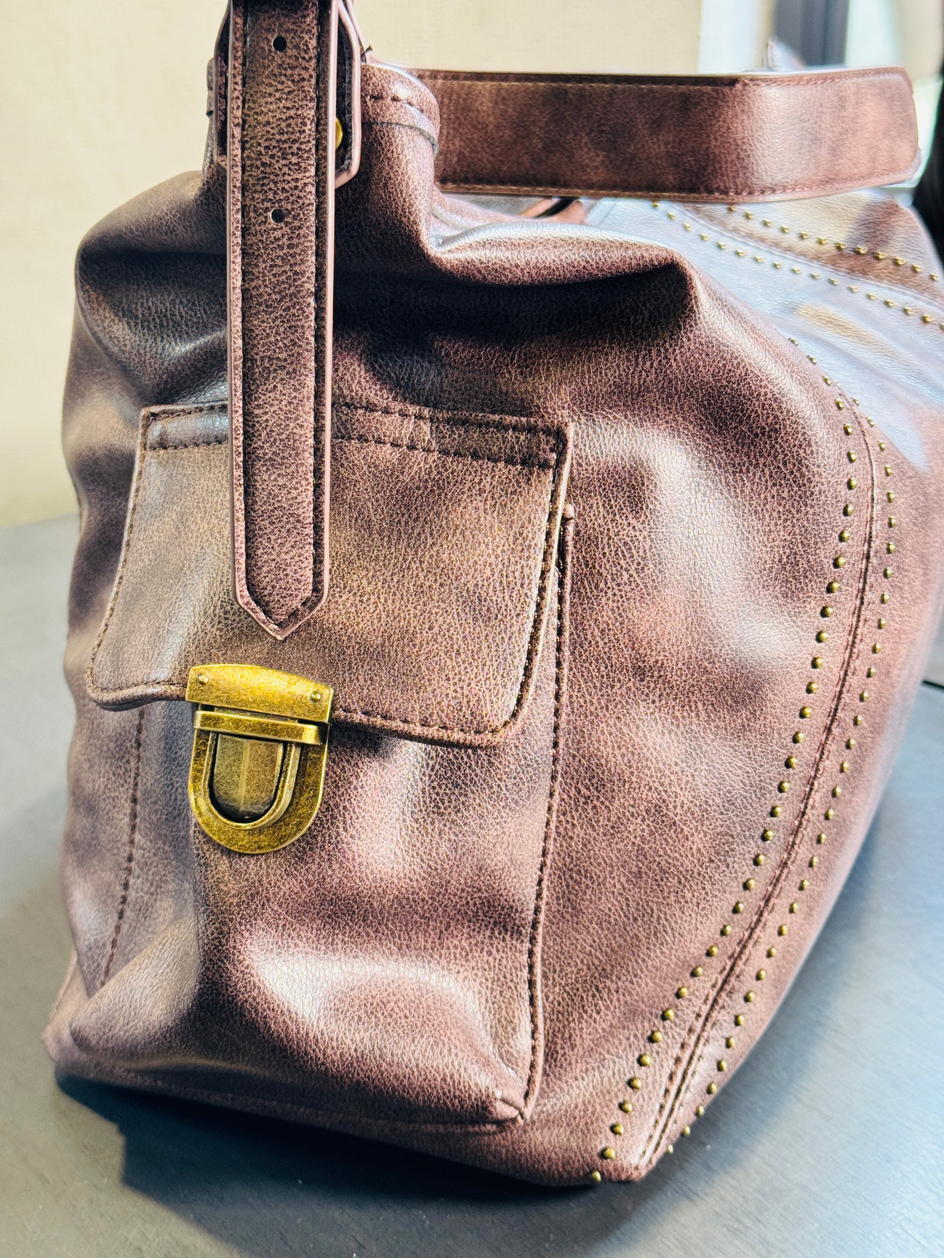 Borsa in similpelle marrone con effetto invecchiato e tracolla all’interno 2373
