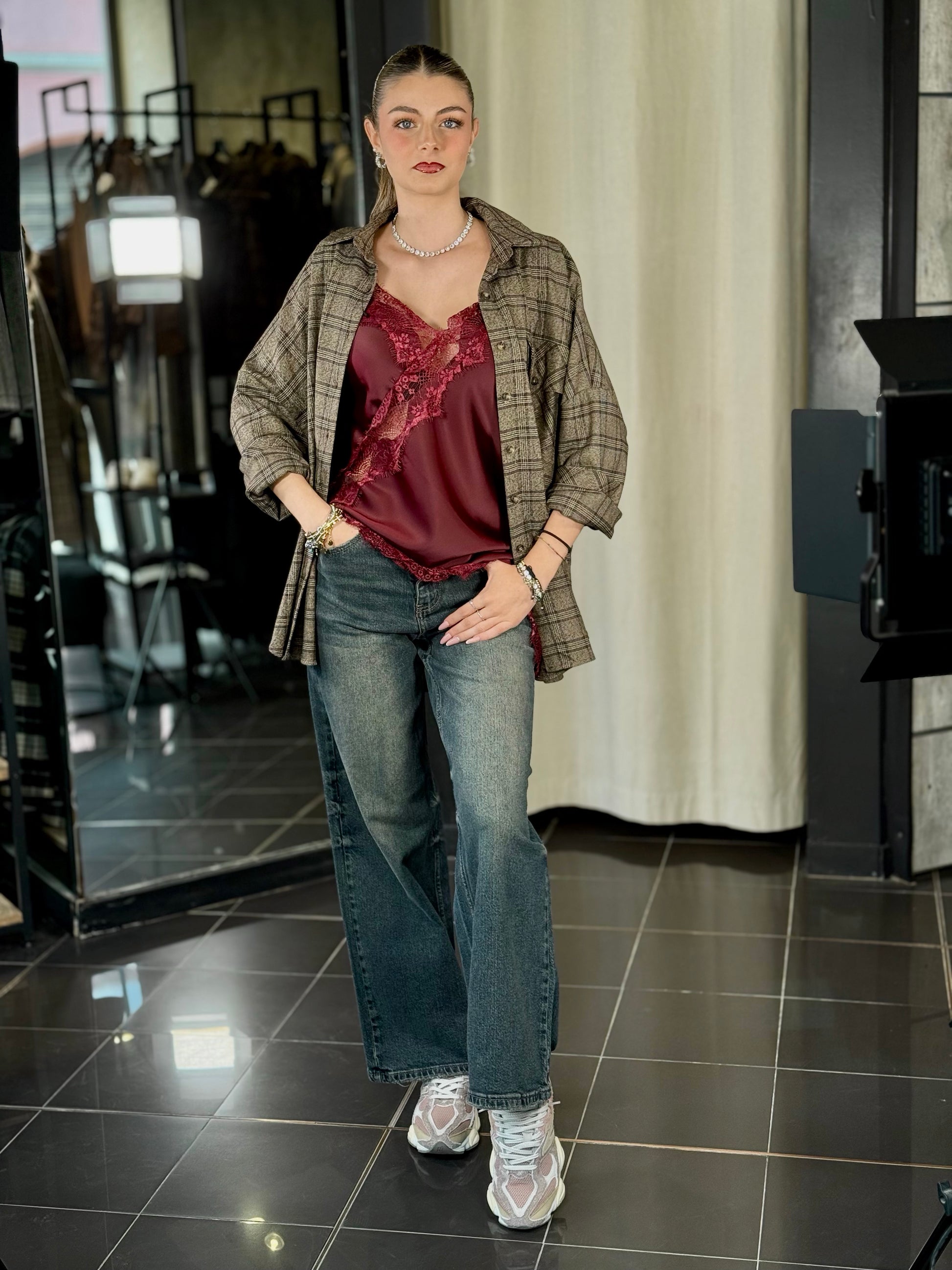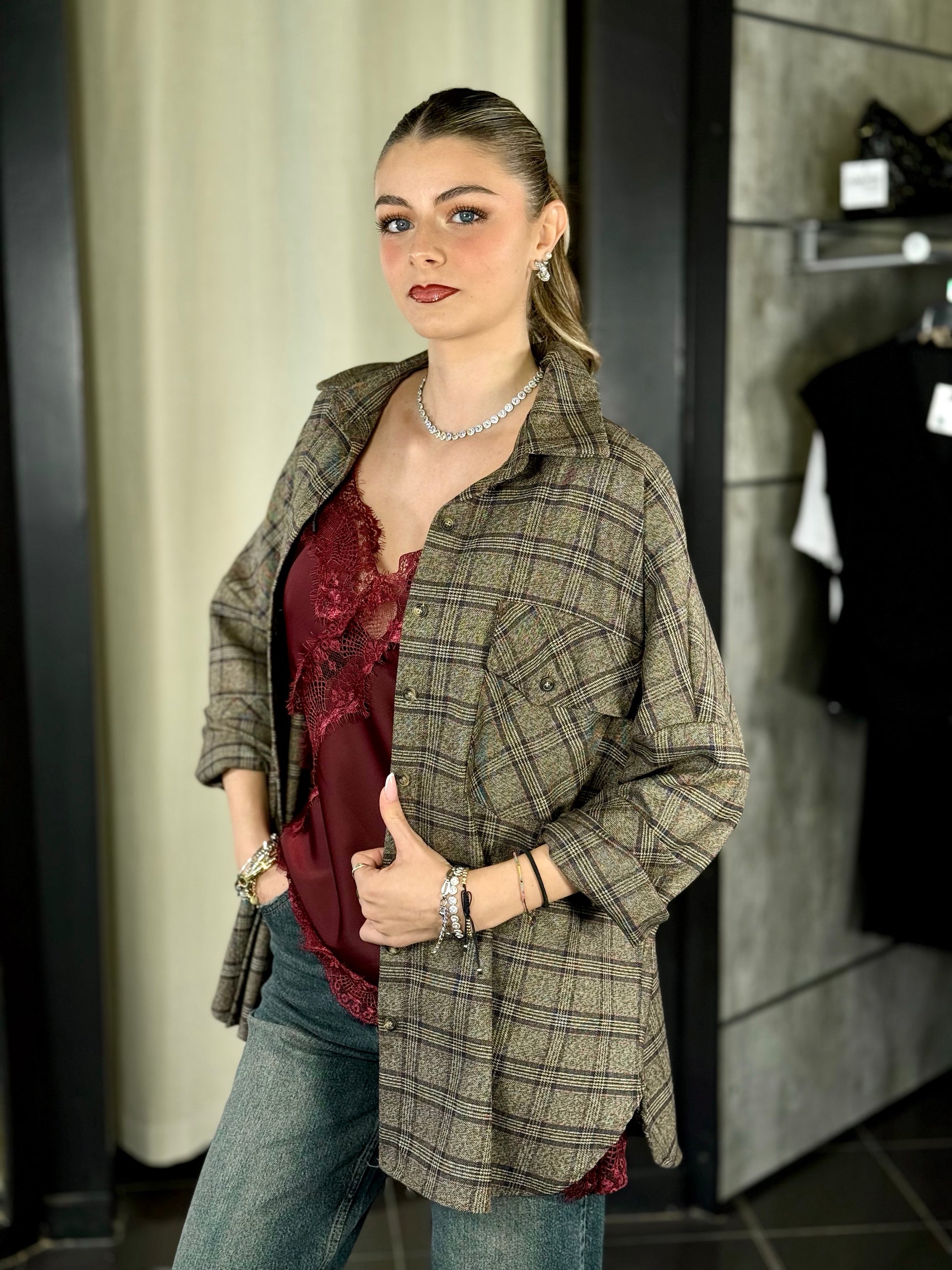 Camicia scozzese marrone aoversize in taglia unica 2001