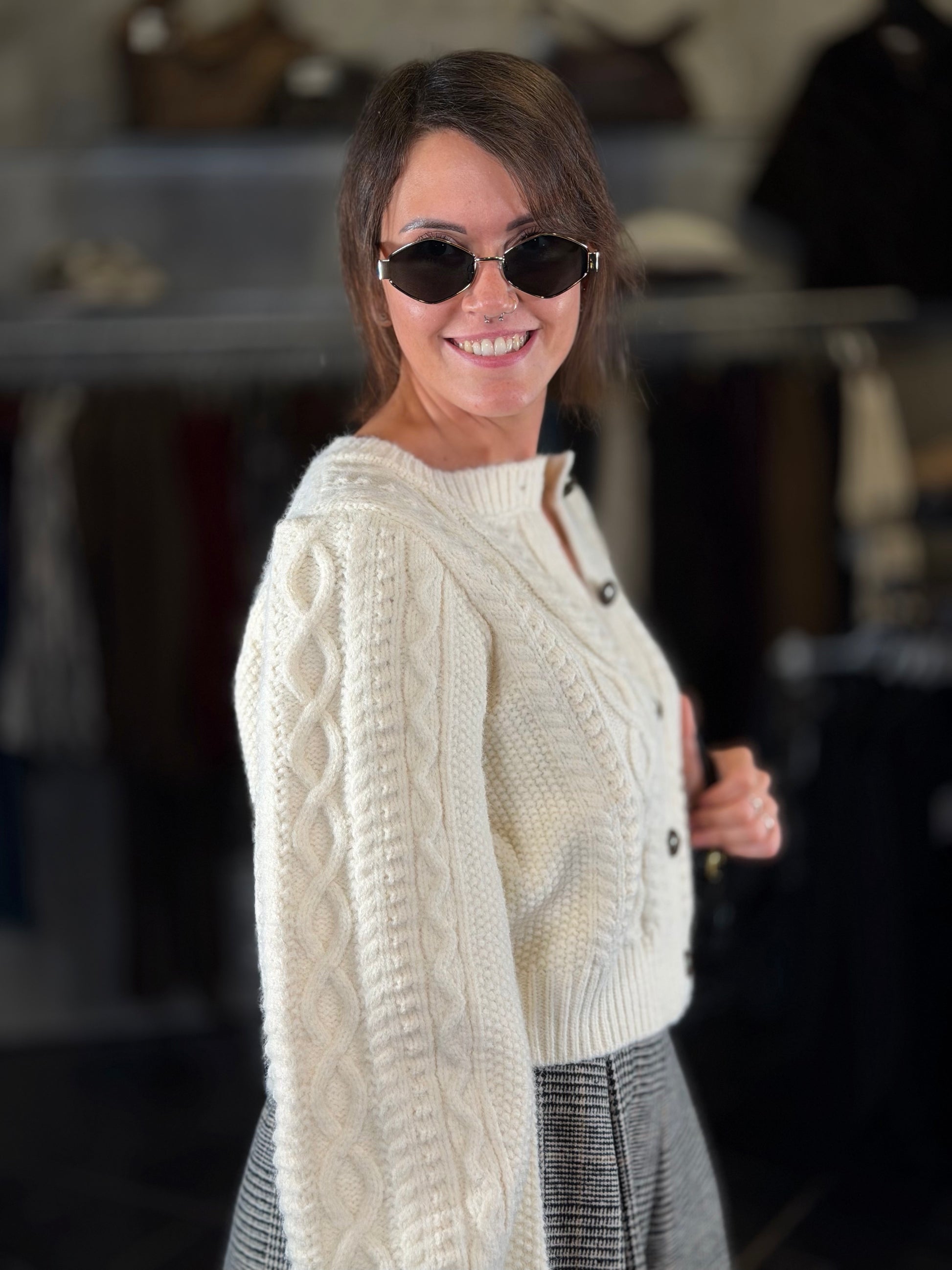 Cardigan crop con maniche a sbuffo in taglia unica 2455