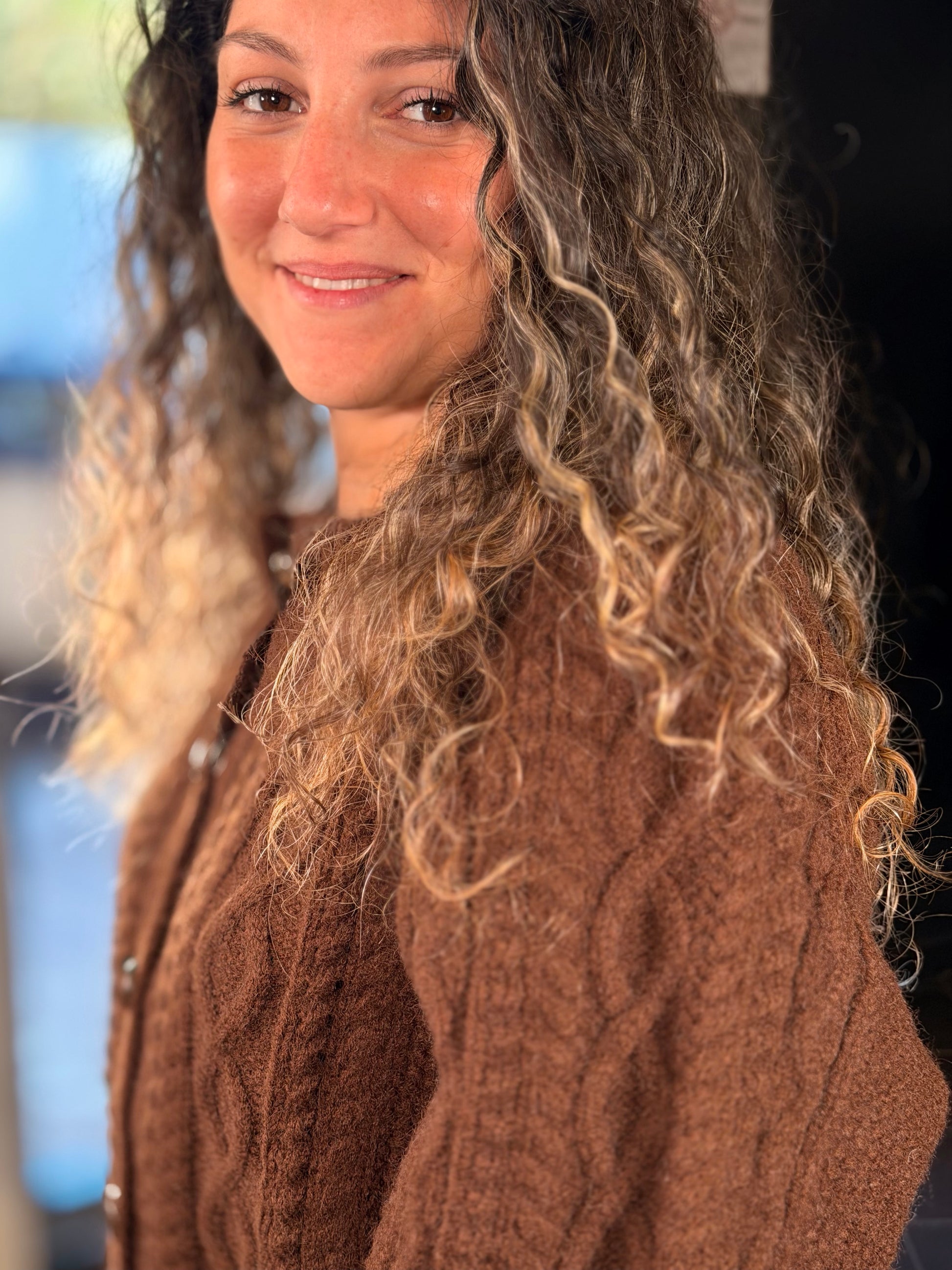 Cardigan crop con maniche a sbuffo marrone in taglia unica 2456