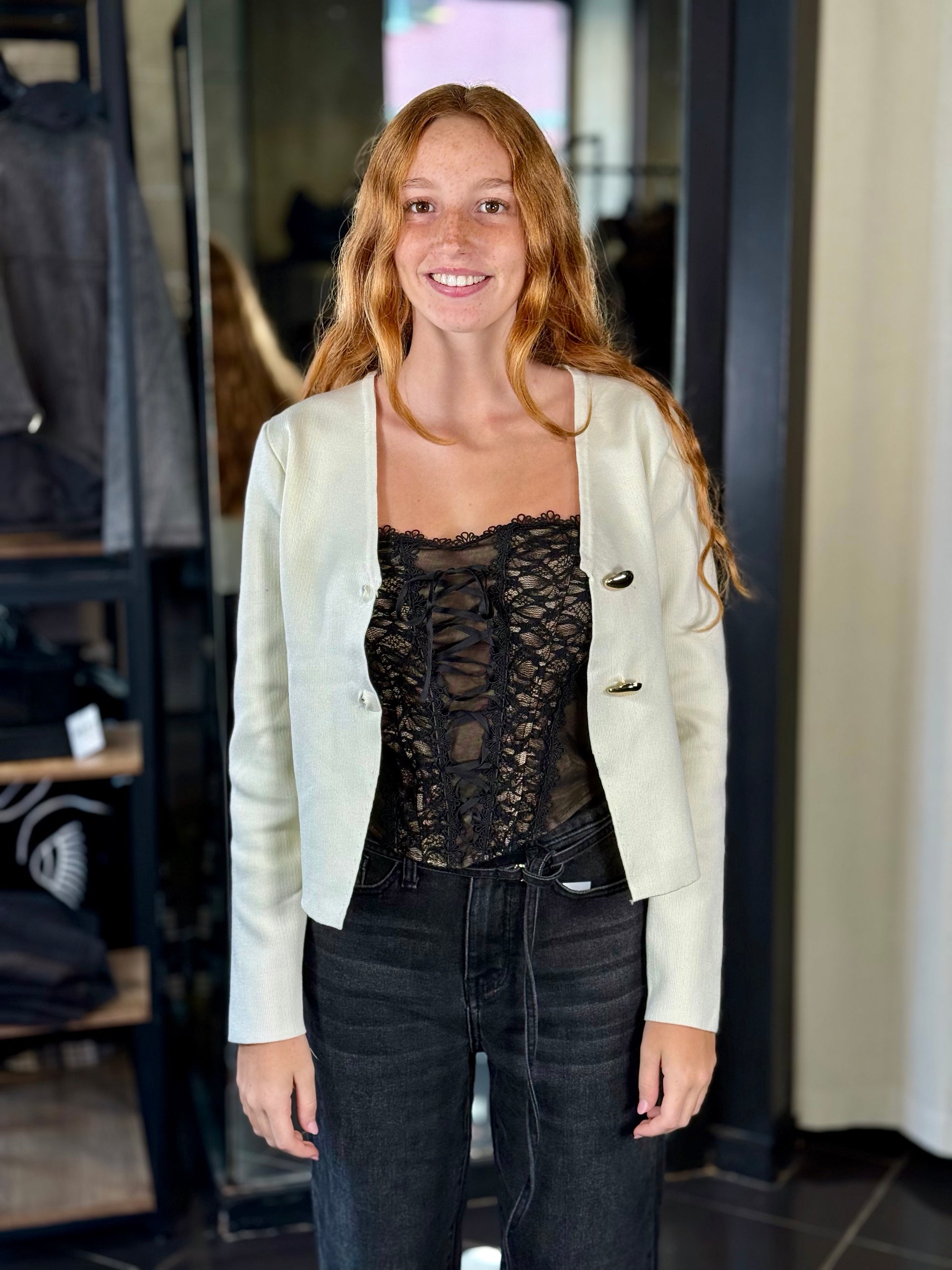 Cardigan panna con bottone a goccia oro in taglia unica 2016