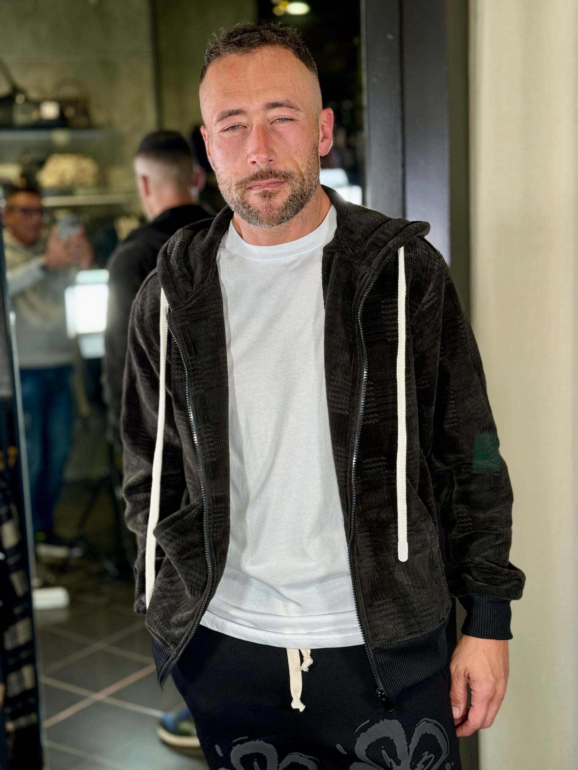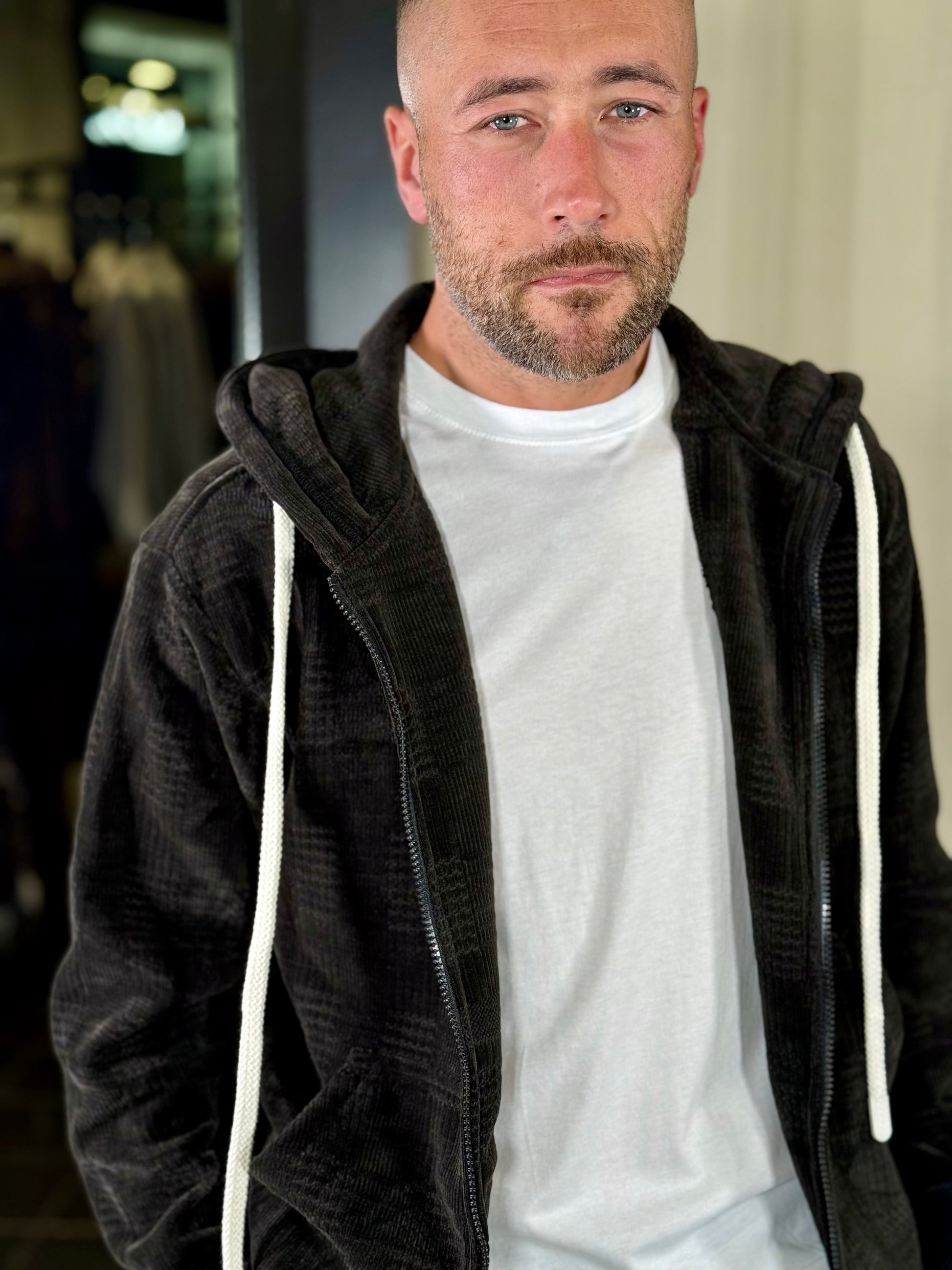 Felpa con cappuccio e zip effetto ciniglia nera 2139