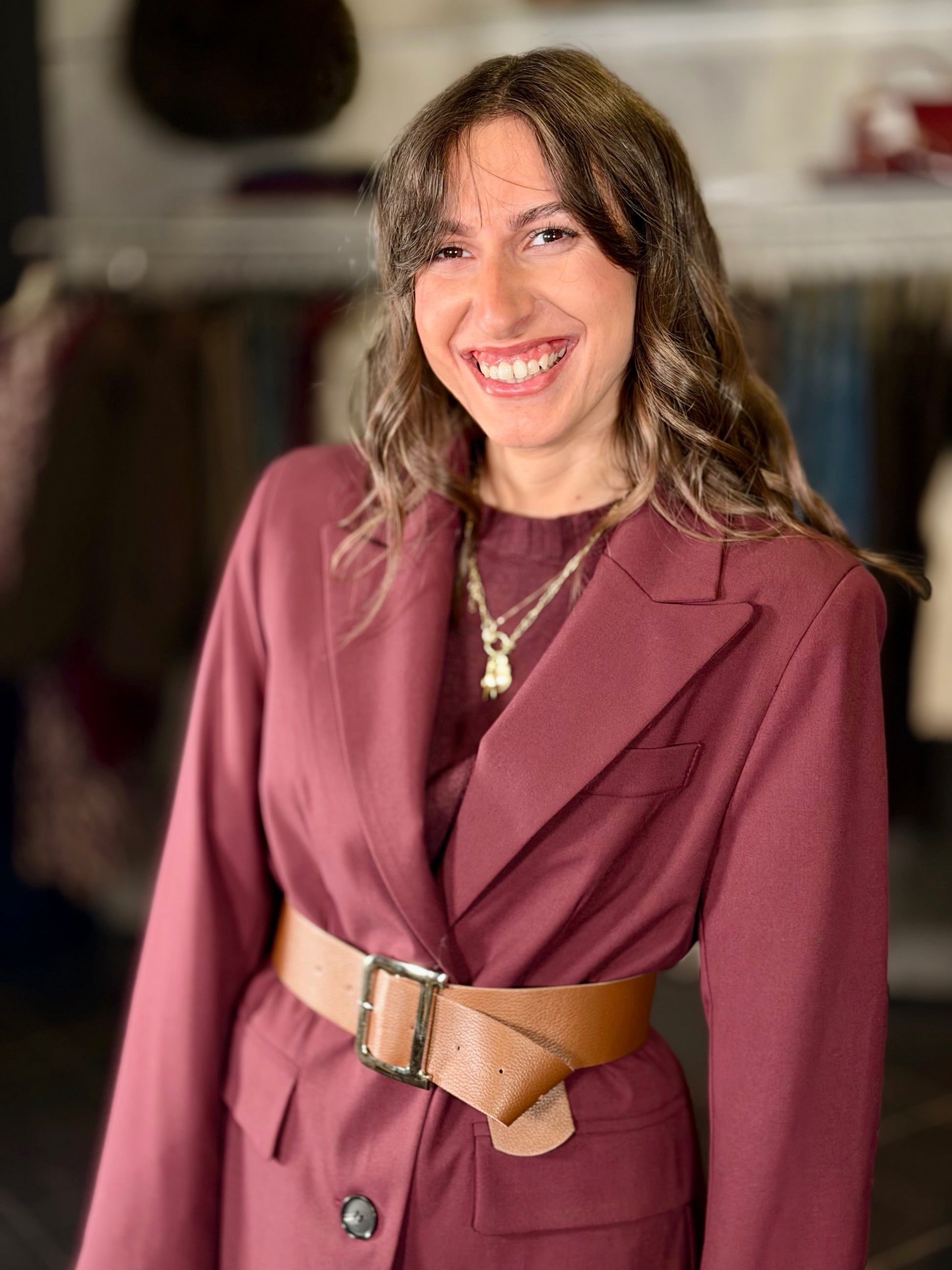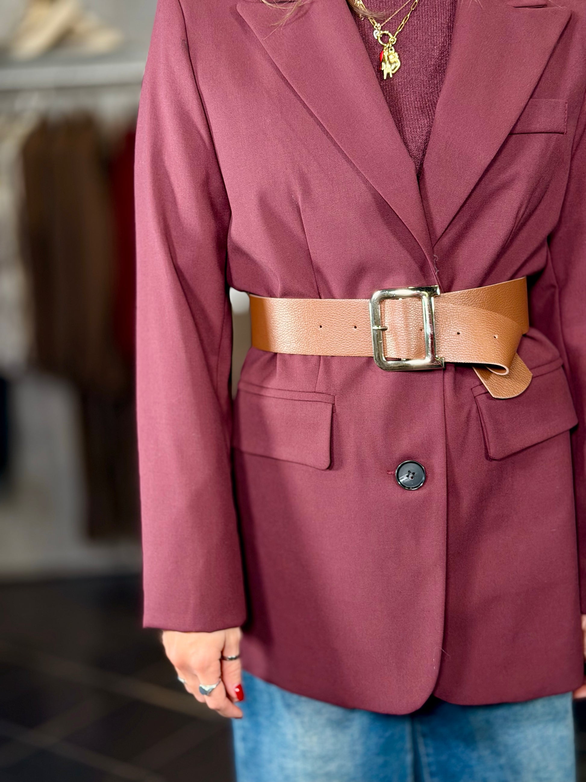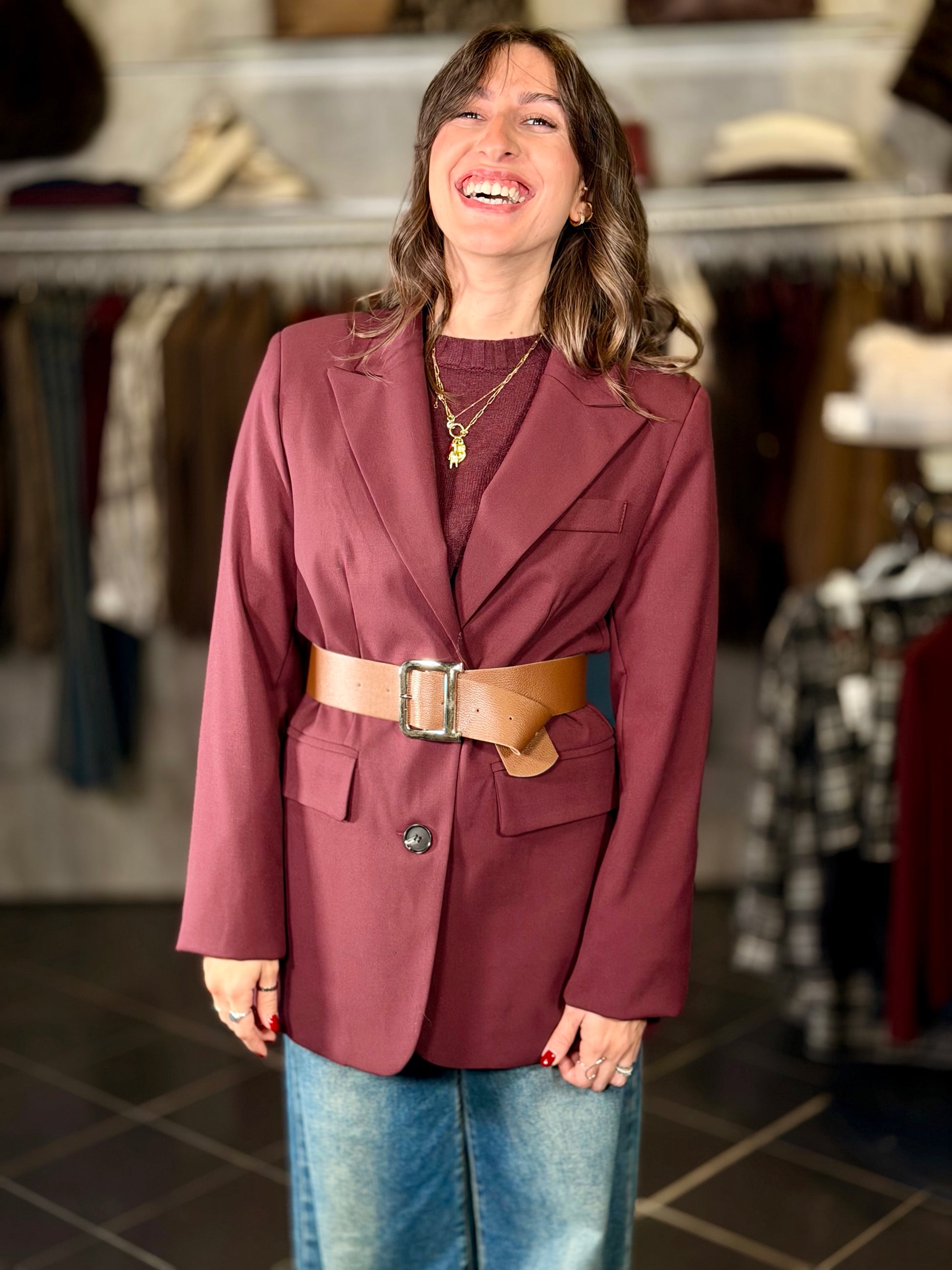 Giacca bordeaux con cintura 2039