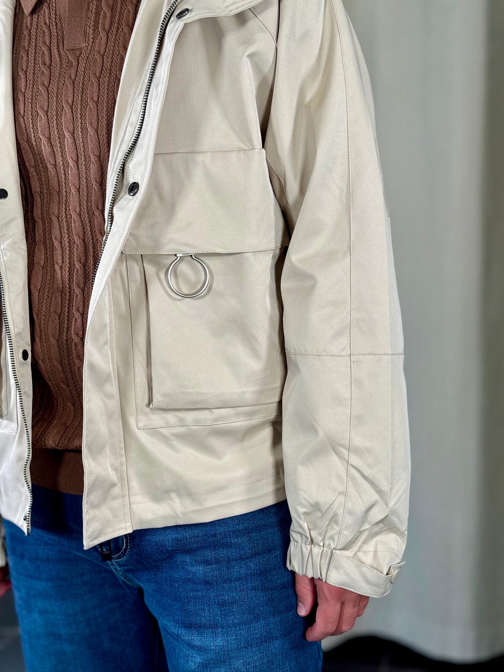 Giubbino in nylon oversize sabbia con tasche applicate 2107