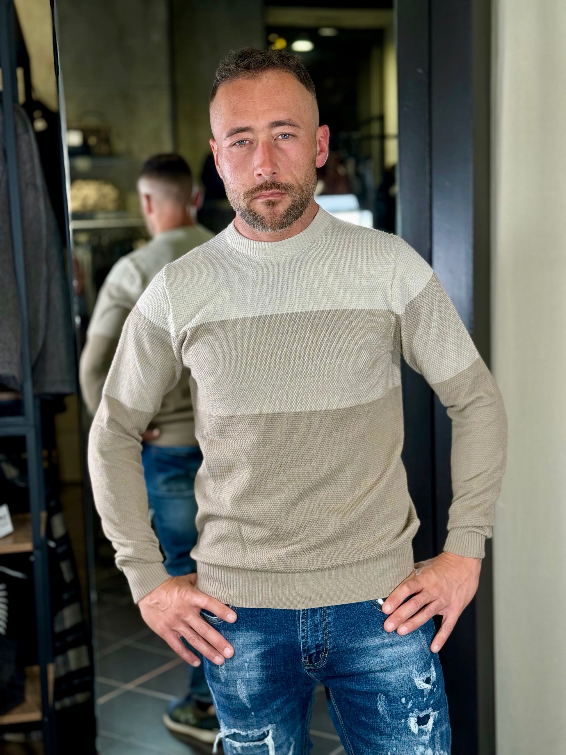 Maglioncino blockcolor bianco e beige 2290