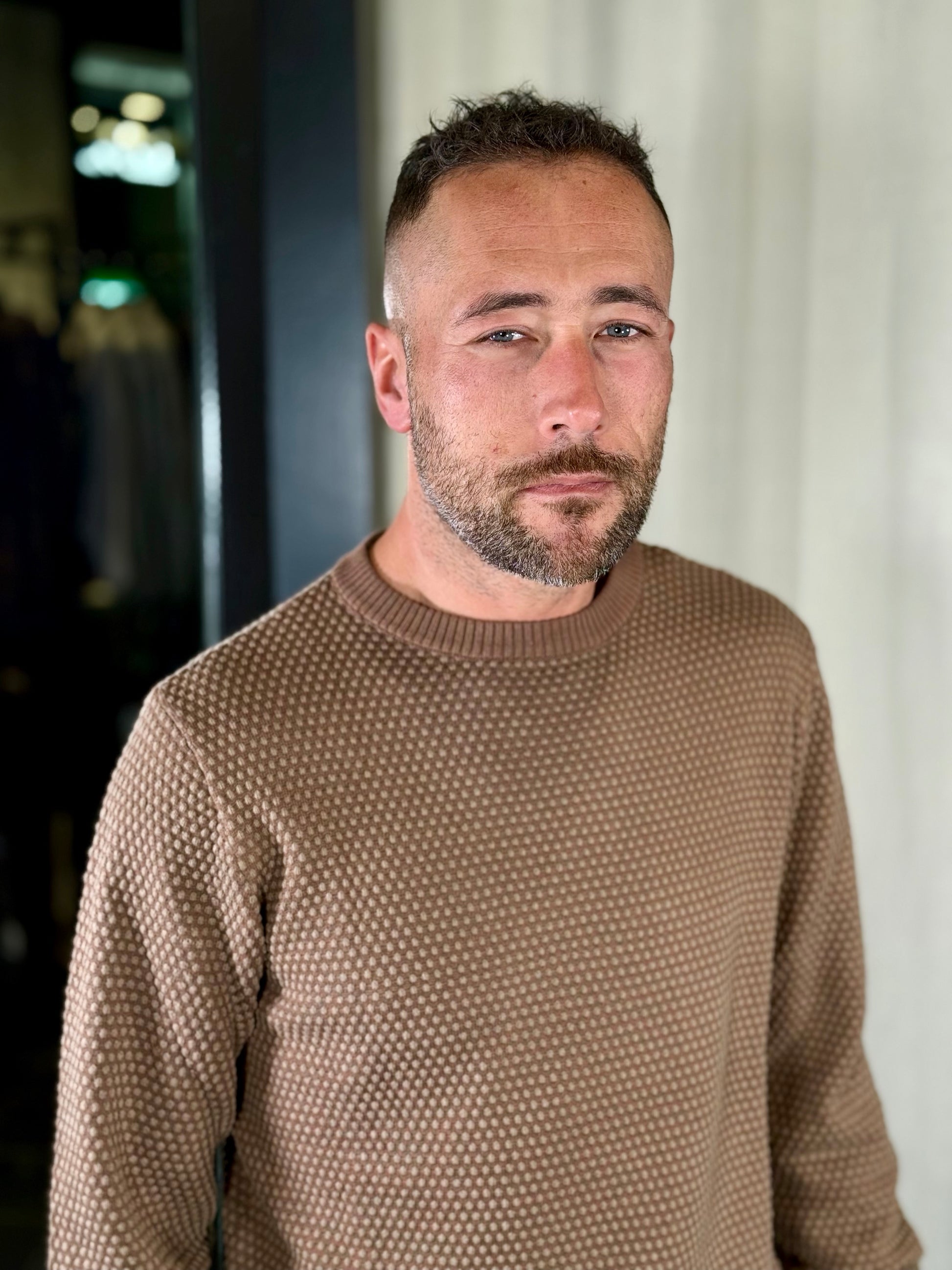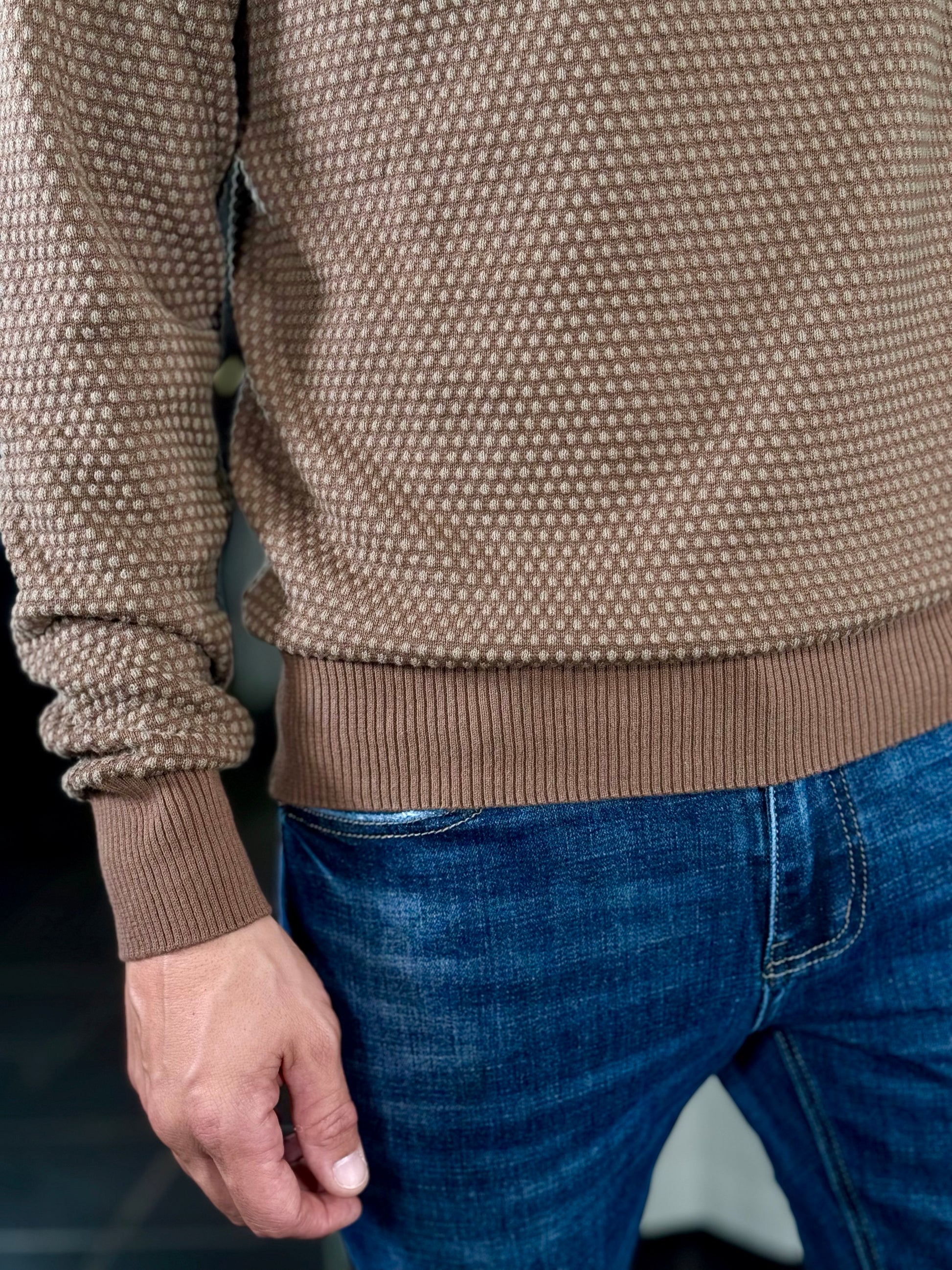 Maglioncino girocollo con pois in tono su tono marrone 2351