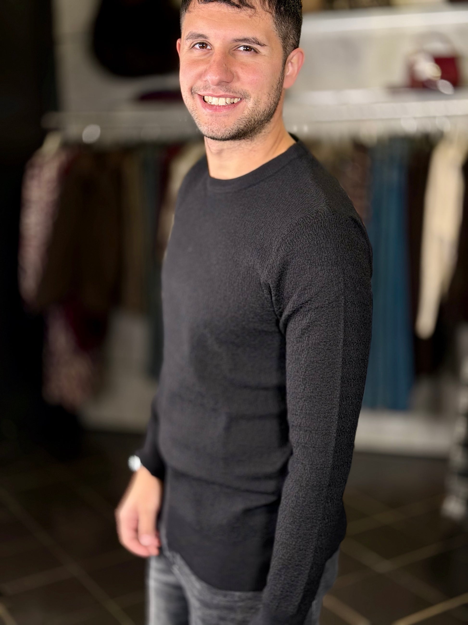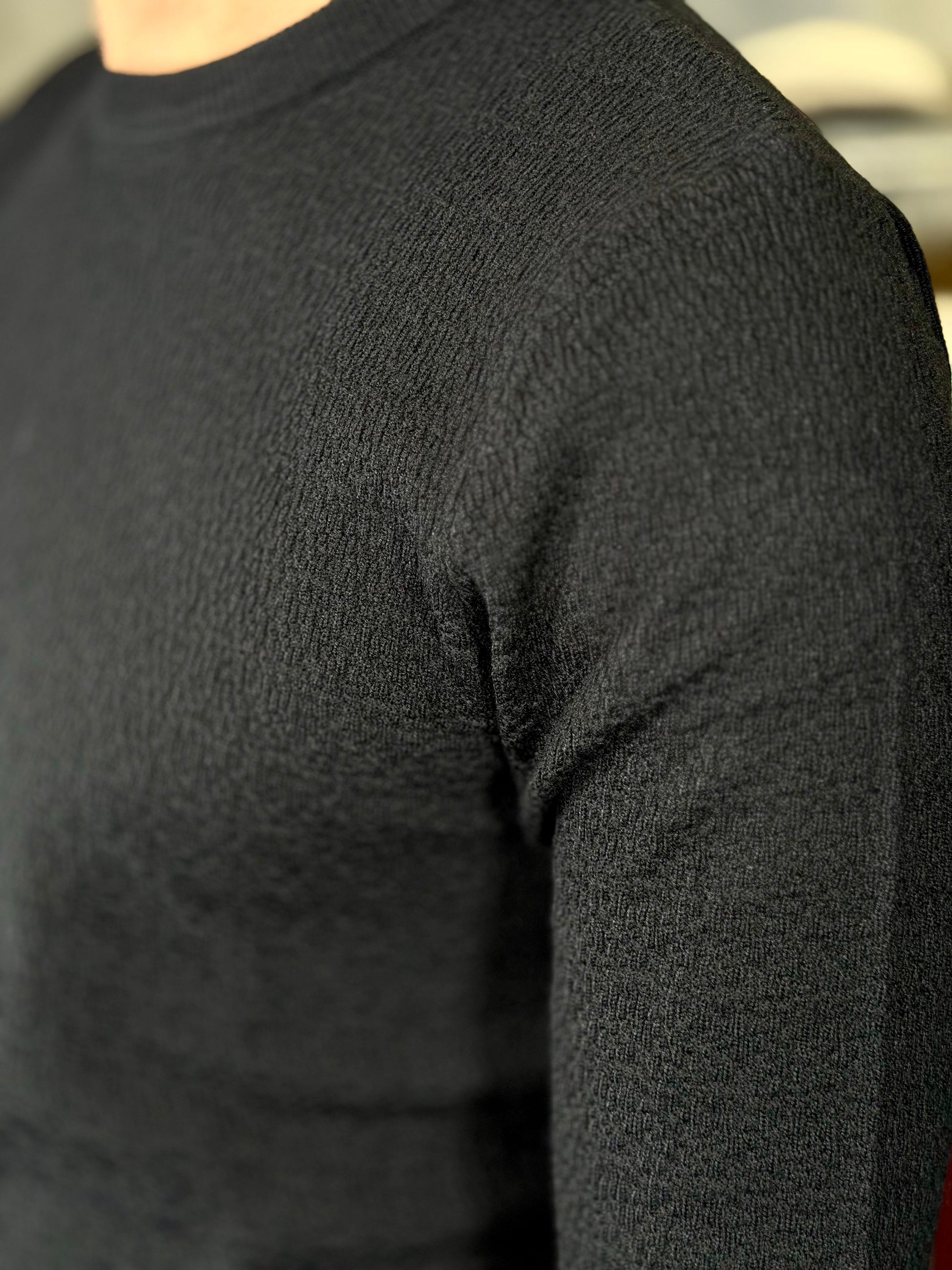 Maglioncino girocollo nero lavorato tono su tono 2097