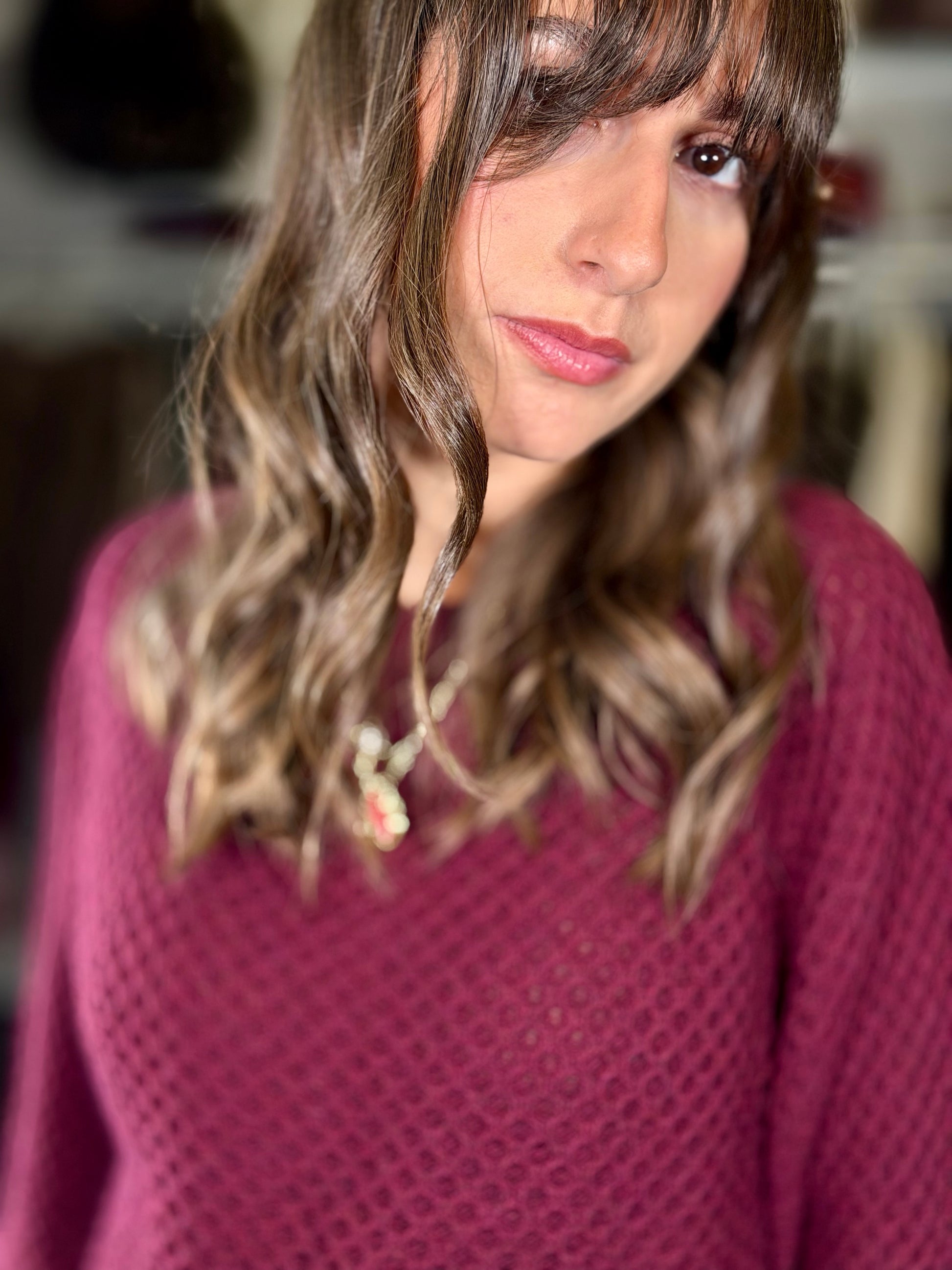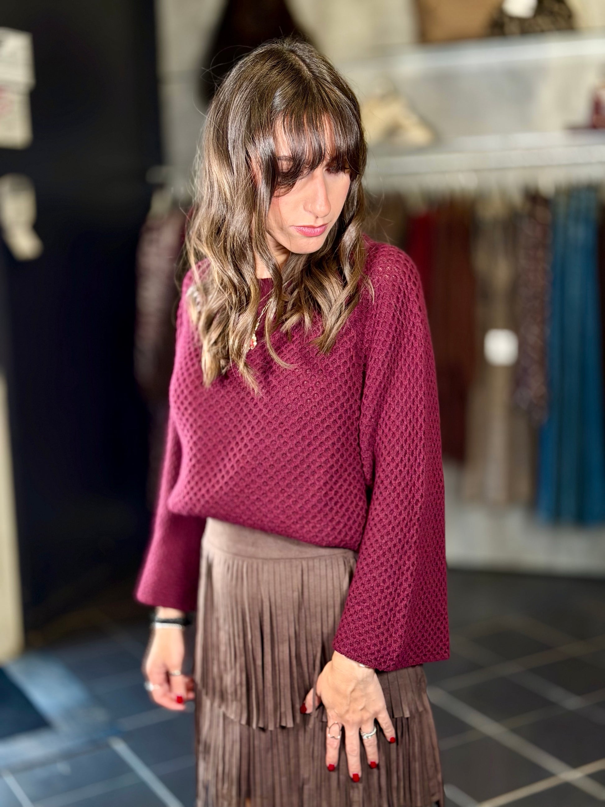Maglioncino quadrato con manica a trombetta bordeaux in taglia unica 2401