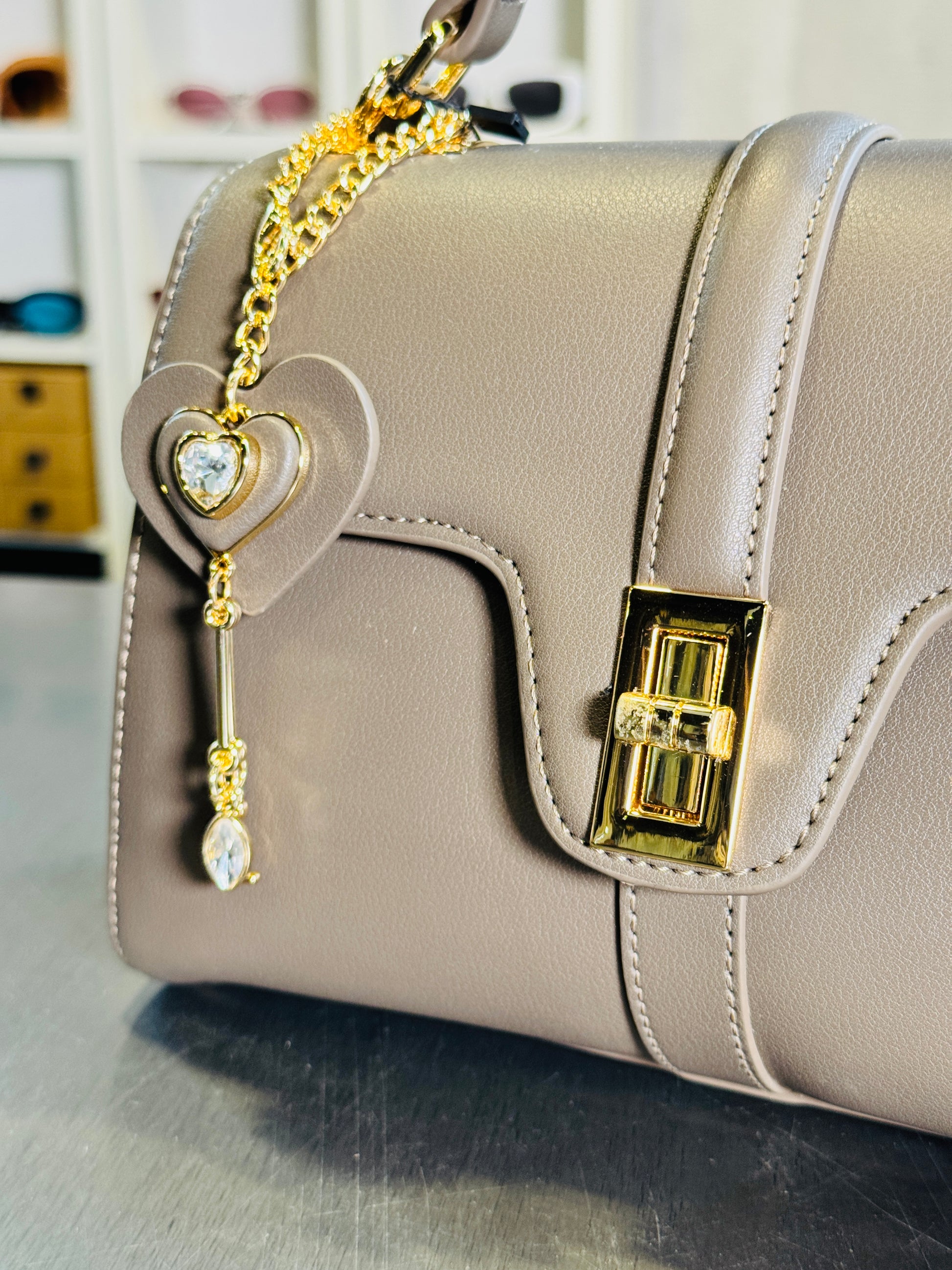 Mini bag taupe con tracolla all’interno e portachiavi 2393