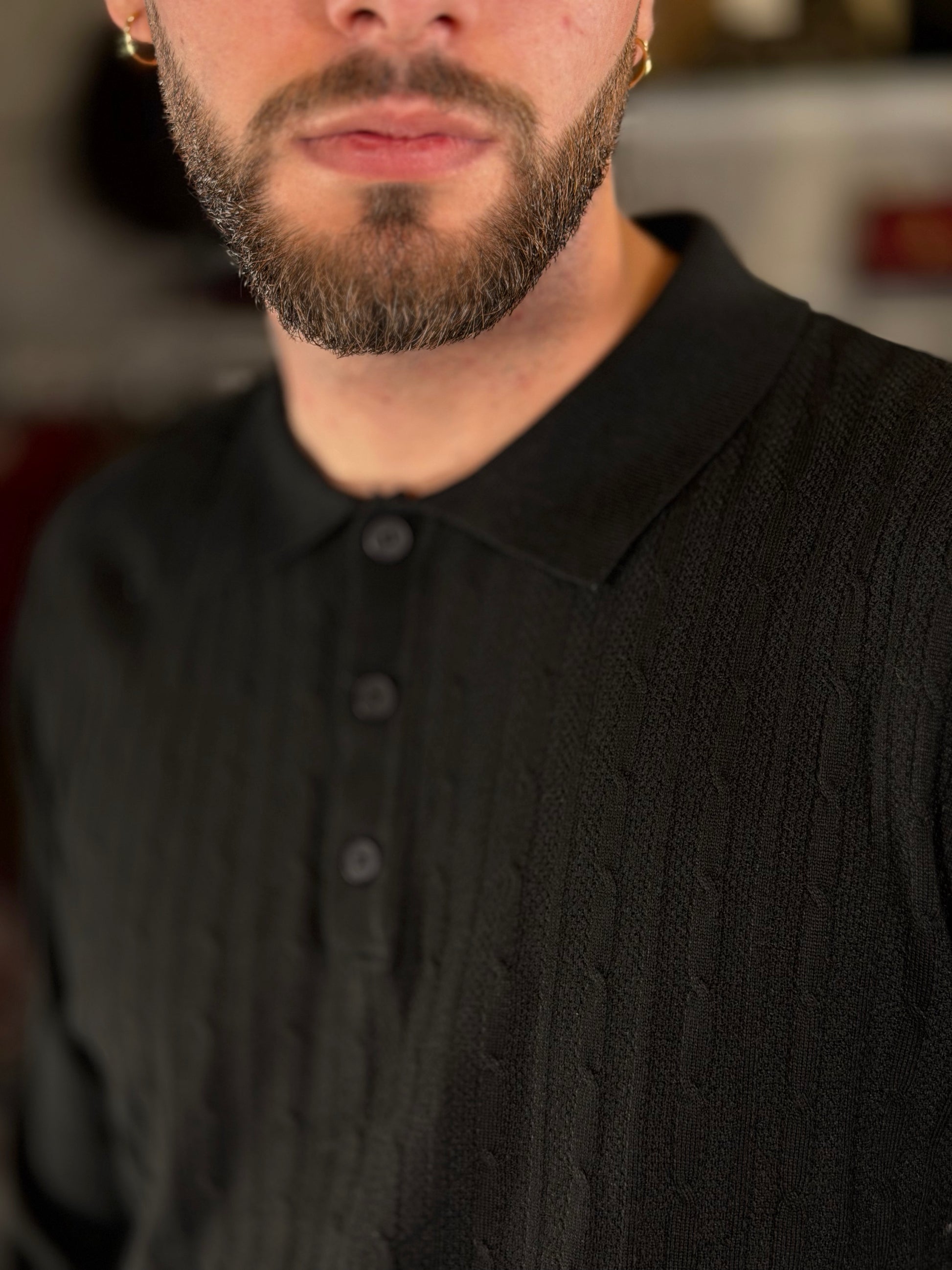 Polo in maglia con trama tono su tono nera 2479