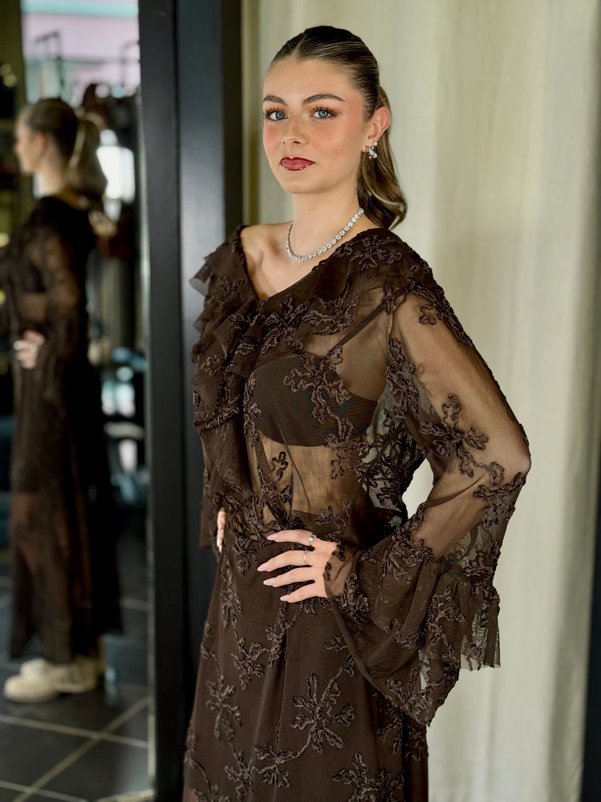 Blusa marrone con ricamo effetto broccato in taglia unica 2172