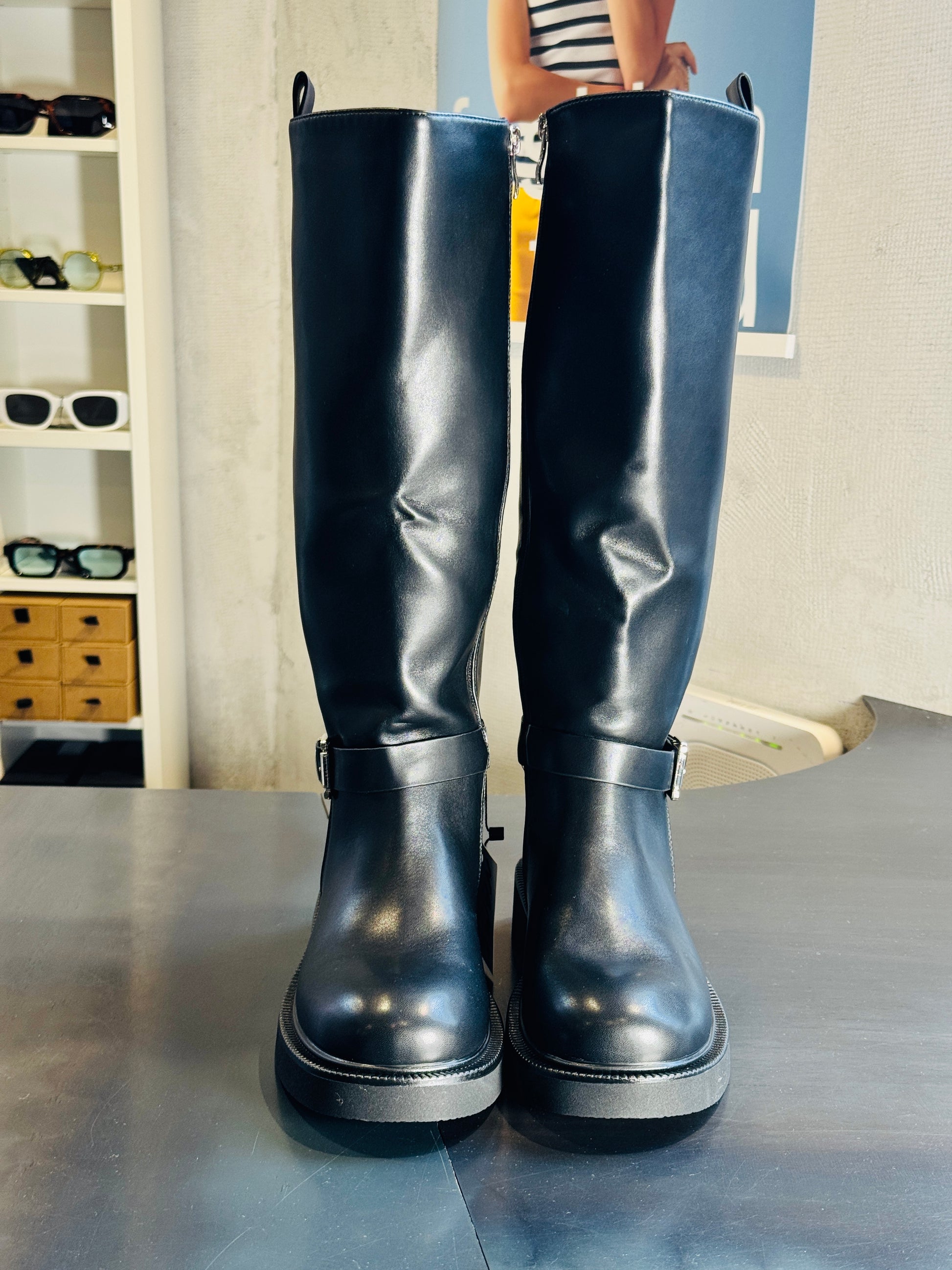 Stivale gamba alta al ginocchio in similpelle nero 2860